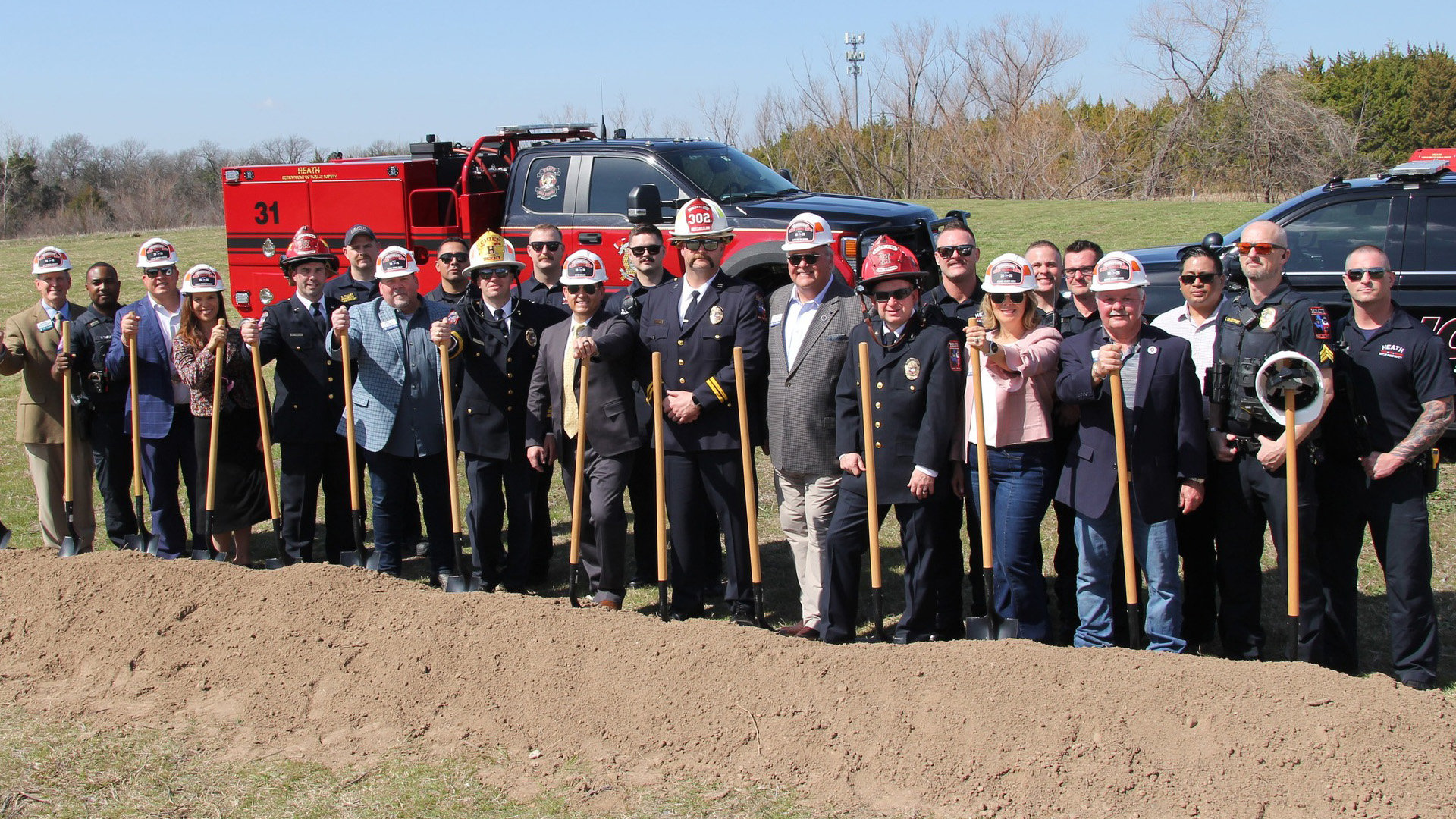 City and County leaders along with members of Heath DPS line at the DPS Station No 30 groundbreaking.