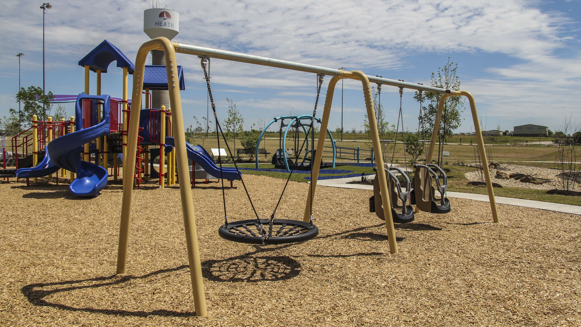 The park is funded through a partnership between the City and Heath Municipal Benefits Corporation to issue $30 million in bonds for this project as well as a new Department of Public Safety Station and Public Works facility without impacting the tax rate. A generous private donation was also made through the Parks And Trails of Heath (PATH) program.